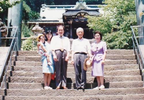 講演前、家族と久能山東照宮を参拝
