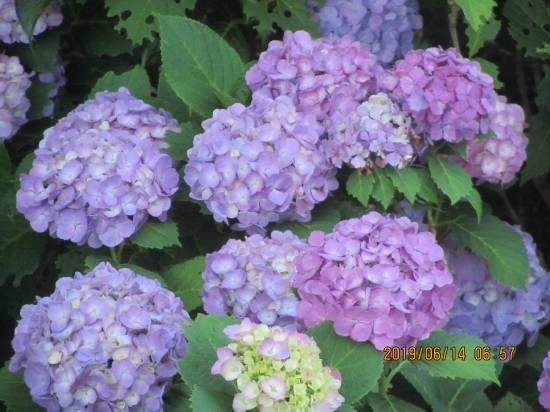 アジサイの色映ゆ滴光る喜雨 2019年6月10日