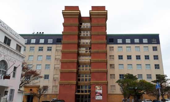 1988年、駅舎として全国初の国指定の重要文化財。ネオ・ルネサンス様式。ドイツ人技師ヘルマン・ルムシュッテル監修下で1914年(大正3年)建造の木造駅舎。イタリアのテルミニ駅を参考にしたという美しい左右対称の木造建築で、青銅製の手水鉢や水洗式トイレ、大理石とタイルばりの洗面所、御影石の男性用小便器など、当時としては非常に珍しい重厚かつモダンな作りである。現役の駅舎が重要文化財に指定されるのは非常に珍しく国内最高の駅舎と言われる。