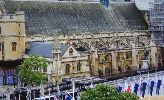 ▼ 式場のウェストミンスター寺院・大広間に到着 安置 10.59〜