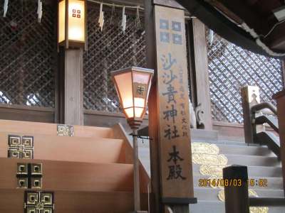 学会&講演出張の帰途、時間が許せば、必ず一か所その土地周辺に見い出せる「先祖の足跡」を、系図を辿りながら、訪ねることにした。先ず、その手始めに、妻と落ち合い、宇多源氏(佐々木源氏)の発祥の地:近江八幡・安土を訪ねた。そして、先祖の氏神を祀る沙沙貴神社を訪ね、神社内の拝覧ならびに先祖供養の祈祷をお願いした。 2014年8月3日