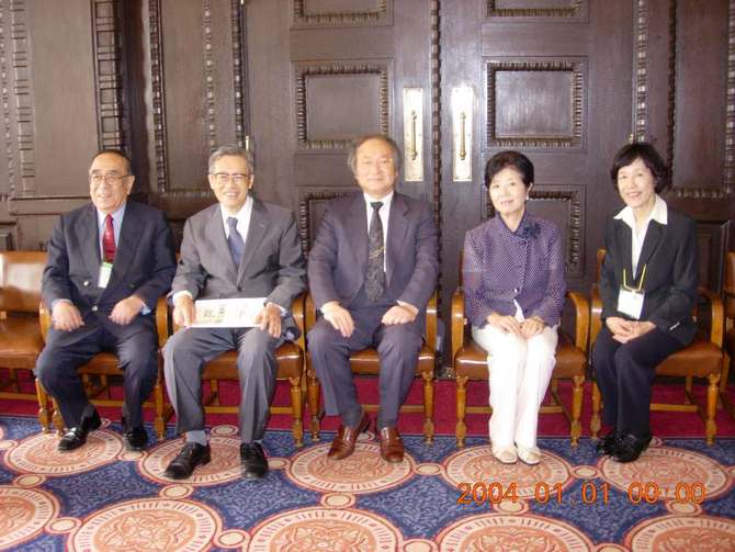 日本微量元素学会(東京) 左より糸川嘉則先生(京大医名誉教授)、野見山一生先生(自治医大名誉教授・第2代理事長)、荒川泰昭(理事長)、野見山一生夫人
