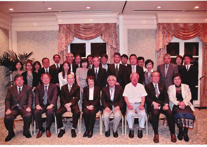 後列左より 日本クリニック(株)社員:松田芳和、井隼正富(次期社長)、糸川嘉則(京大医名誉教授、仁愛女子大学学長)、小嶋亨子社長、吉田宗弘会長、橘川俊明(日本健康栄養食品協会・特保食品部長)