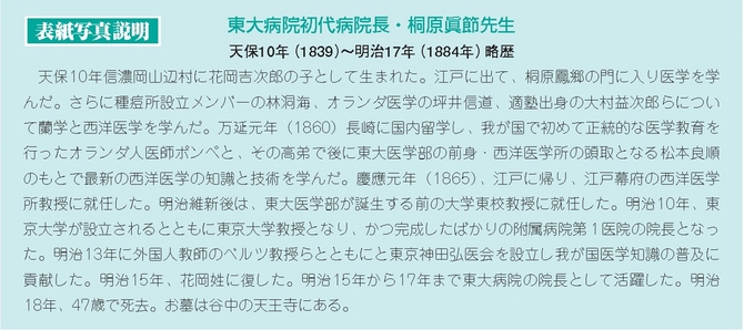 花岡真節 別名(桐原玄海、桐原真節)。佐倉順天堂の創始者・佐藤泰然の妹きせの娘・佐喜を娶る。東大医学部付属病院・初代病院長。