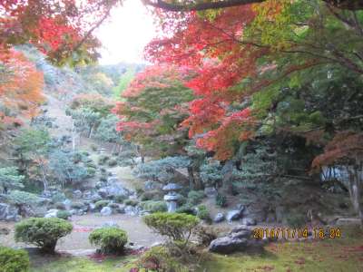 本堂に座して、ご住職夫妻と面談いただきながら眺める山裾を利用した室町時代の紅葉なる庭園はまた格別の絶景である。