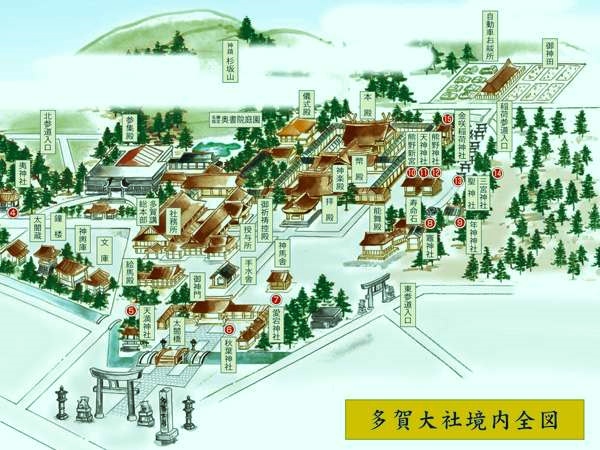 多賀大社は、滋賀県犬上郡多賀町多賀にあり、伊邪那岐命(いざなぎのみこと)・伊邪那美命(いざなみのみこと)の2柱を祀る。古来より朝廷のみならず武家からも,長寿と縁結びの神様として信仰され、神仏習合の中世期には「多賀大明神」として信仰を集めた。式内社で、旧社格は官幣大社。現在は神社本庁の別表神社である。全国に分祀されており,その数は233社(境内社まで含めると299社)にものぼる。